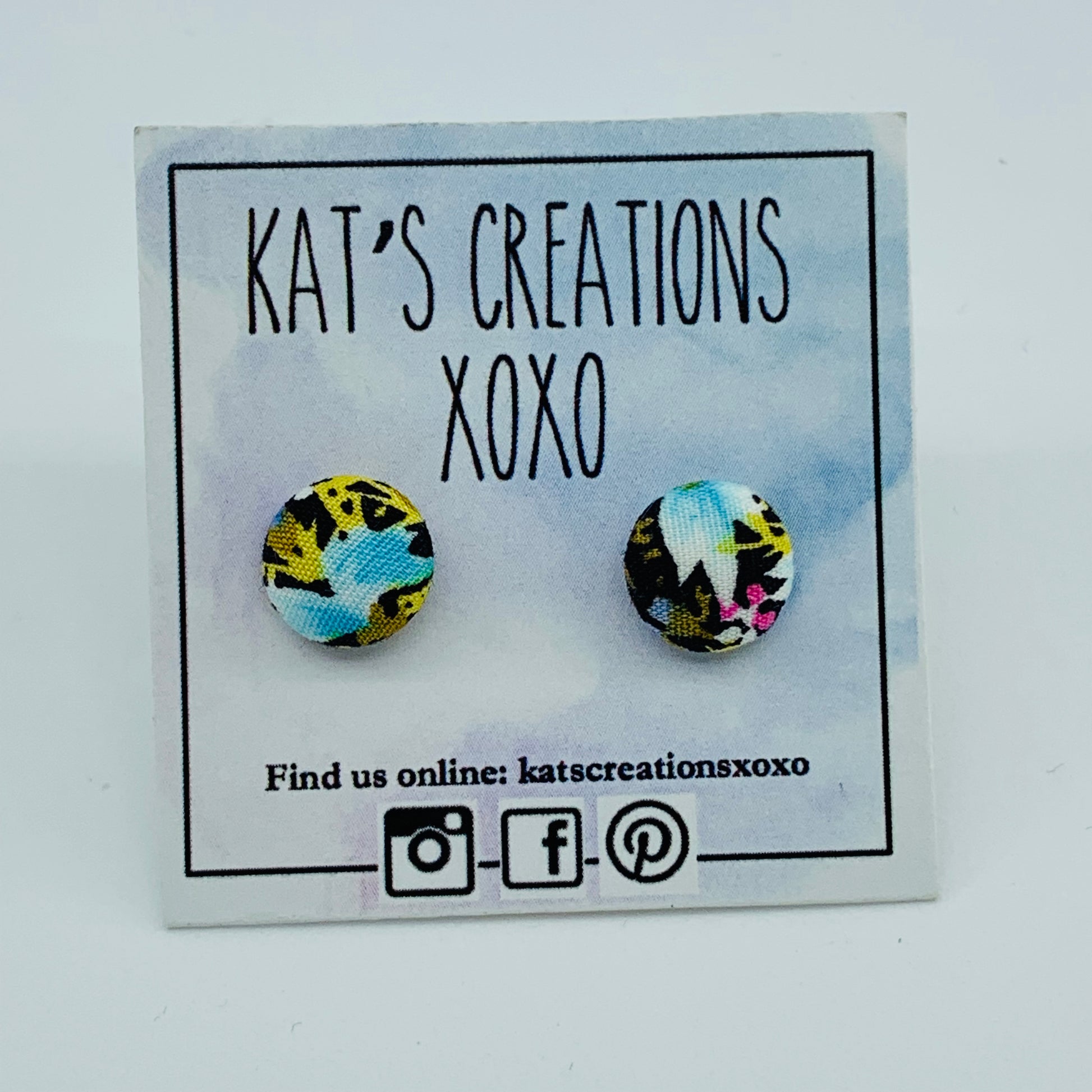 The fabric button measures approximately 12mm in diameter on a 8mm surgical steel stud backing. Each pair of earrings will differ in pattern and it is likely that they will not match 'perfectly' due to their handmade nature.