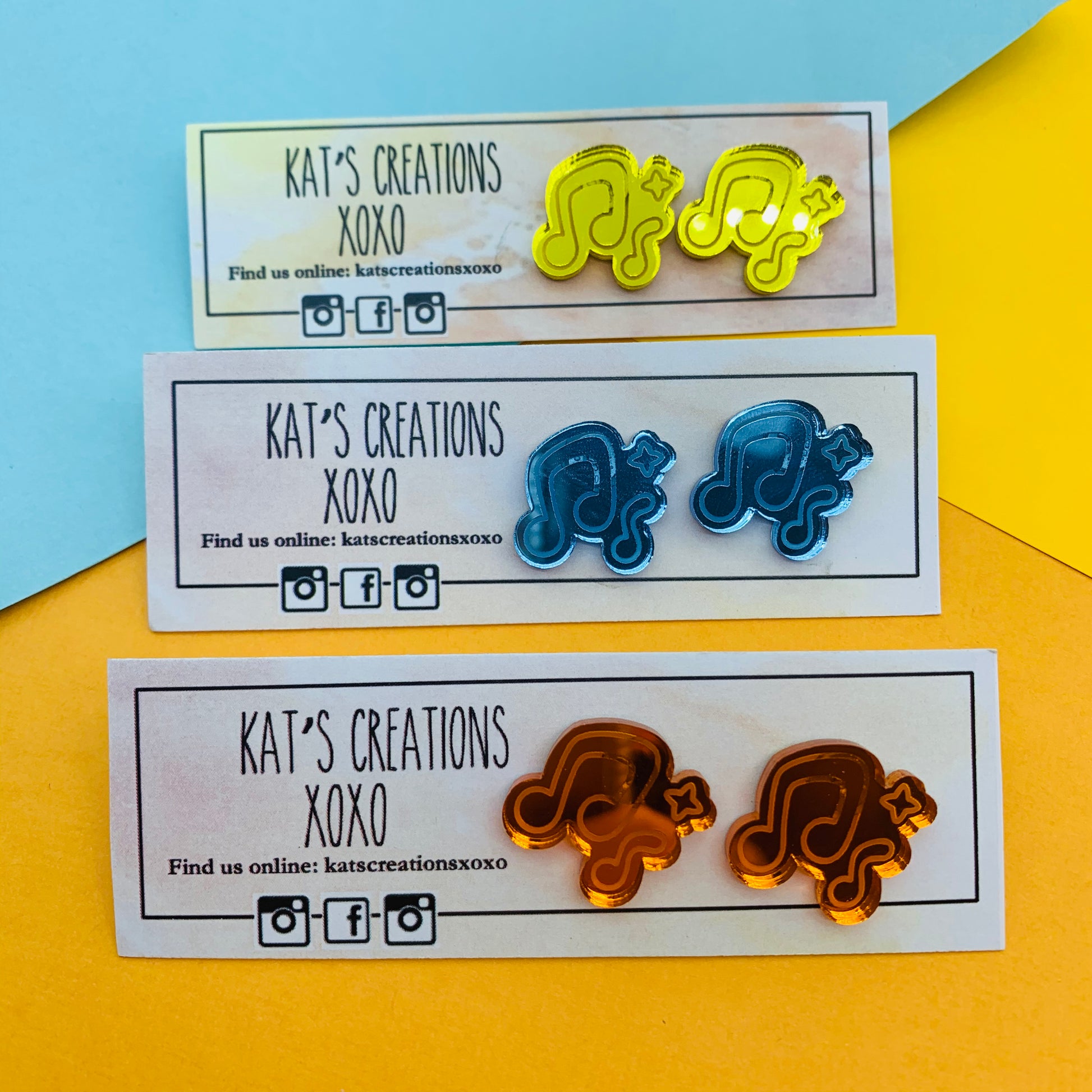 Etched in mirrored acrylic, these mirror studs come in a variety of colours. The hardest decision will be which colour to pick.