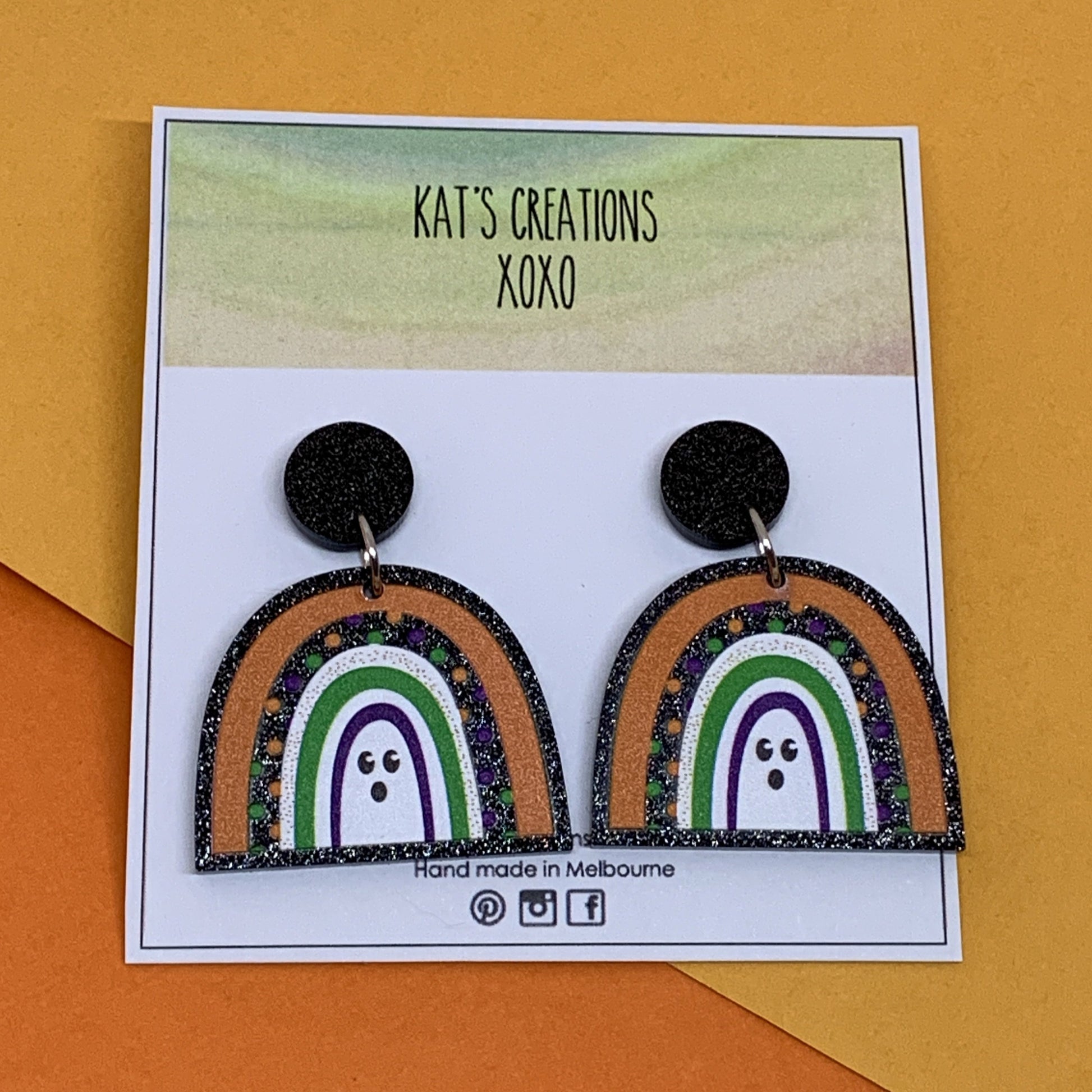 UV laser printed on acrylic, the mix of colour and black glitter make these dangles to DIE for!