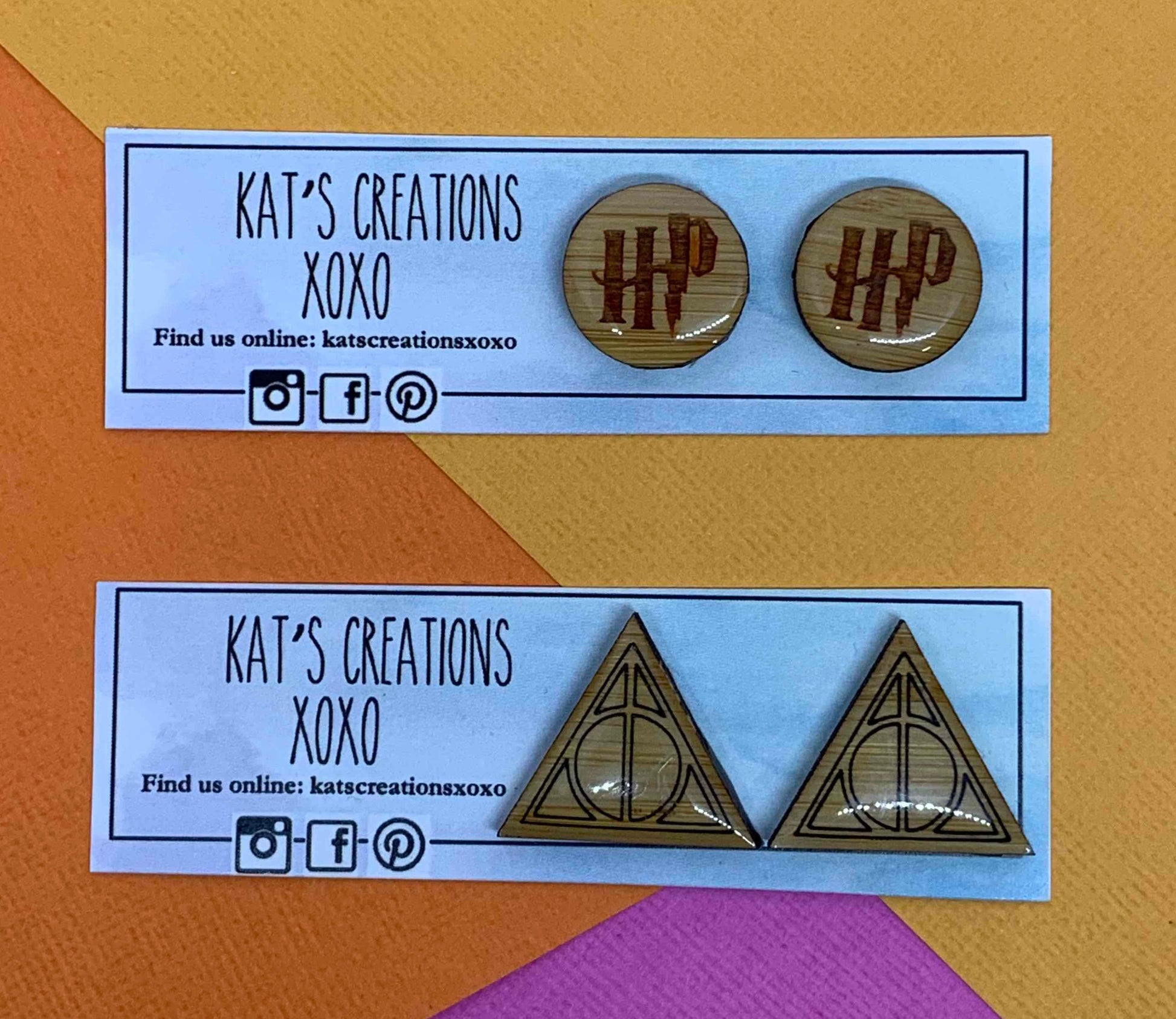 Stunning circle stud with etched HP. These wooden studs with a top coat of resin. The resin is super shiny and gives the studs an awesome gloss finish.