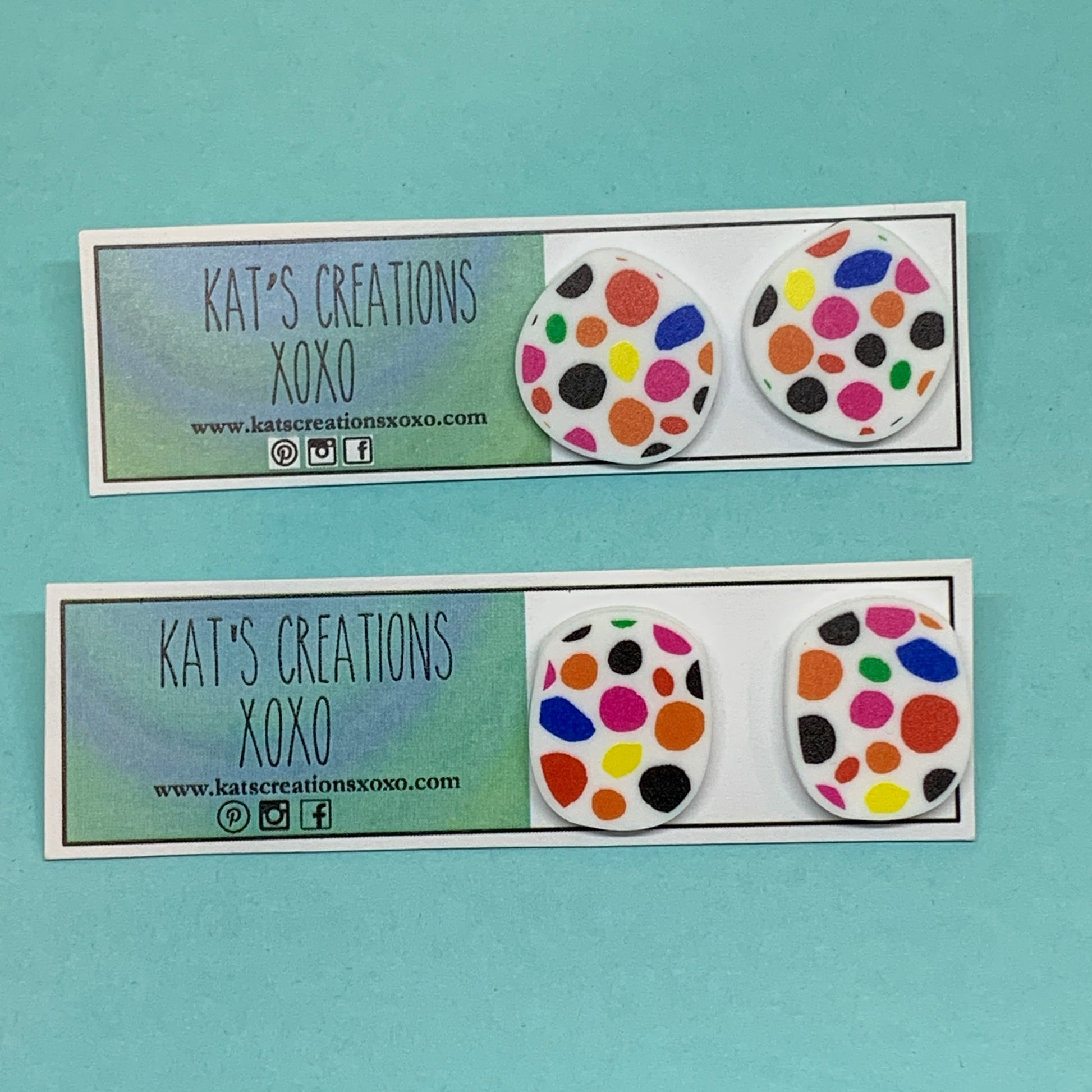 Our Pattern Pebble studs have funky UV prints printed on them and are simply stunning!