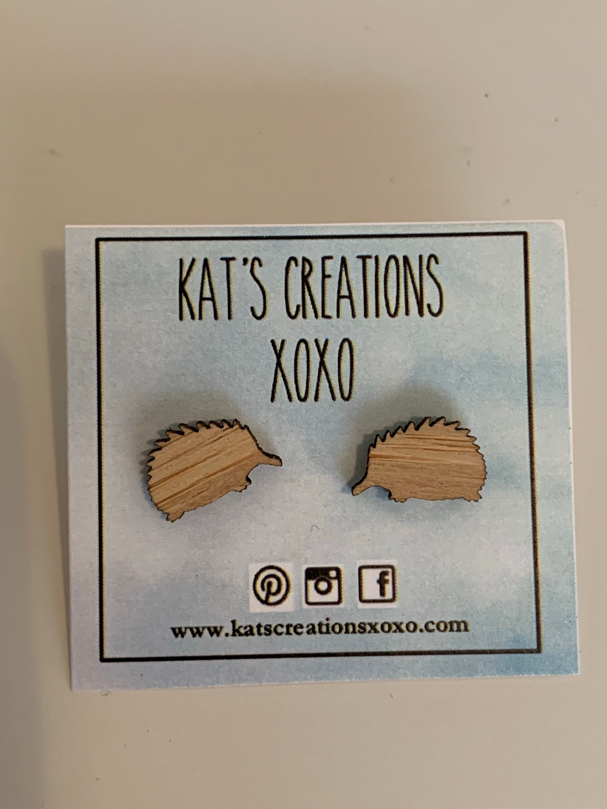One of Australia’s most iconic animals. This cute echidna a stud in etched in wood and glued to a surgical steel stud.