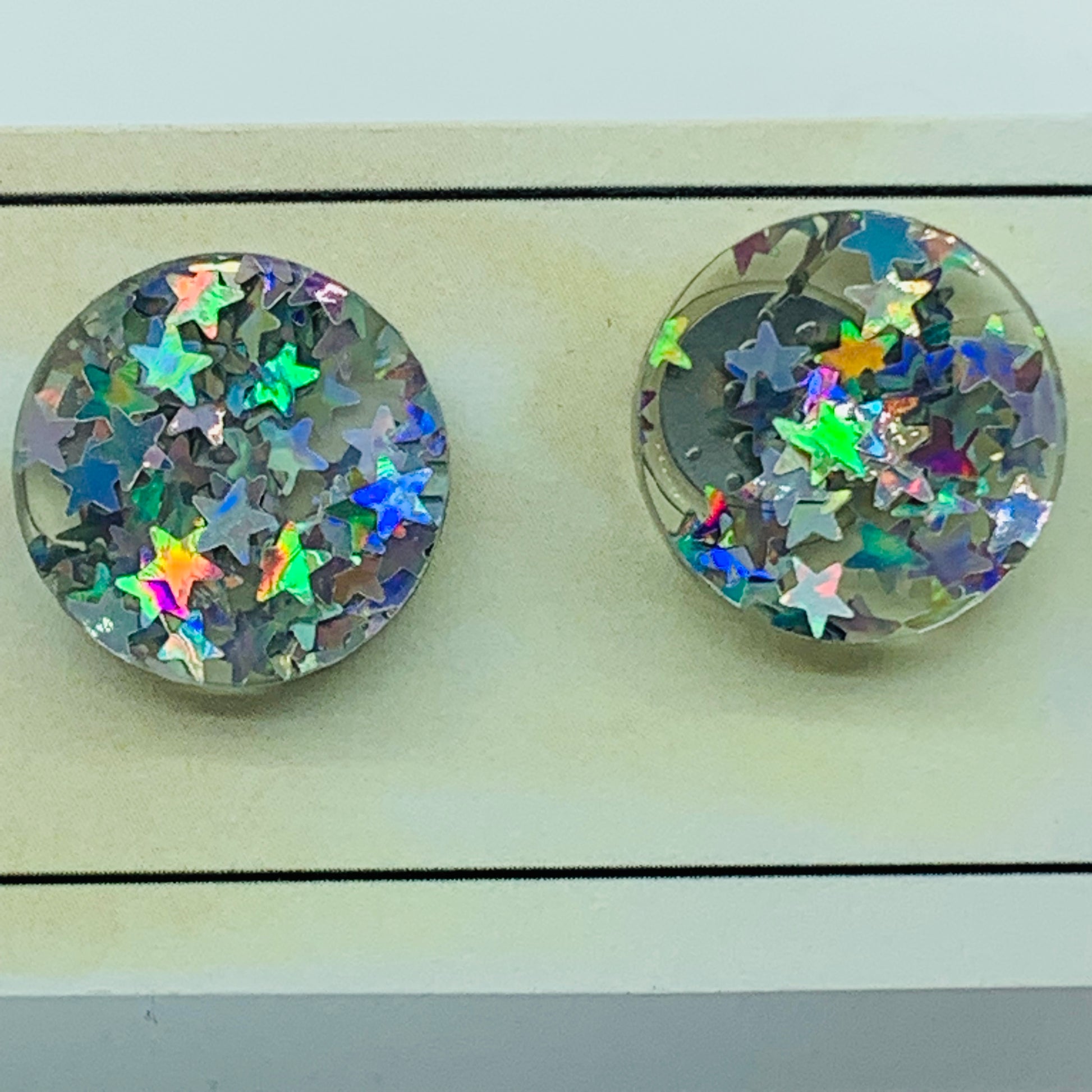 These gorgeous acrylic studs are 3mm thick and measure approx. 15mm.